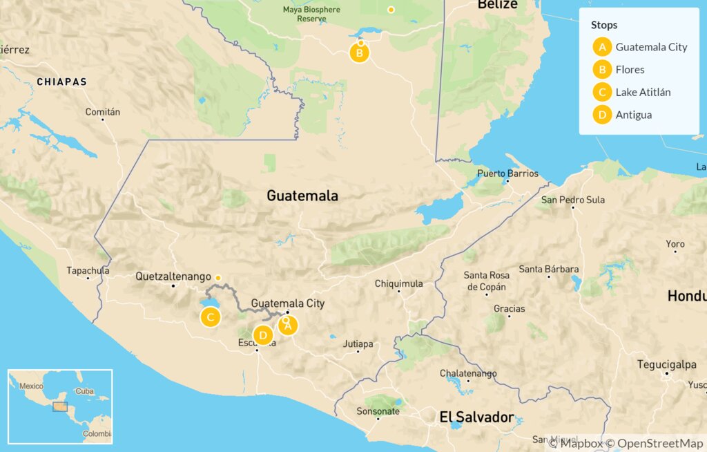 Map of Glimpse of Guatemala: Flores, Lake Atitlán & Antigua – 9 Days