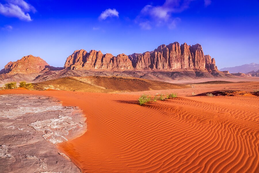 Enjoy a spectacular desert sunrise this morning, with sweeping views over the red sands of Wadi Rum. After breakfast, an off-road Jeep excursion will take you deeper into this UNESCO-protected site. Travel through valleys, rock canyons, dunes, and deserts, stopping to check out rock inscriptions and petroglyphs as well as majestic views. Spend a little time at each stop to hike and scramble and explore at your own pace.