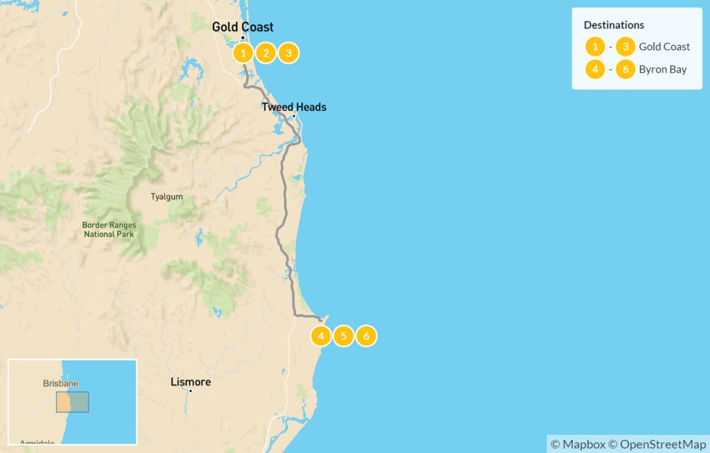 Map of Gold Coast & Byron Bay – 7 Days