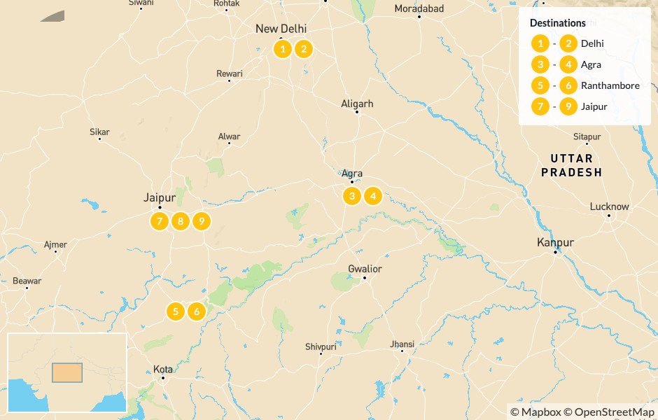 Map of Golden Triangle & Ranthambore National Park – 10 Days