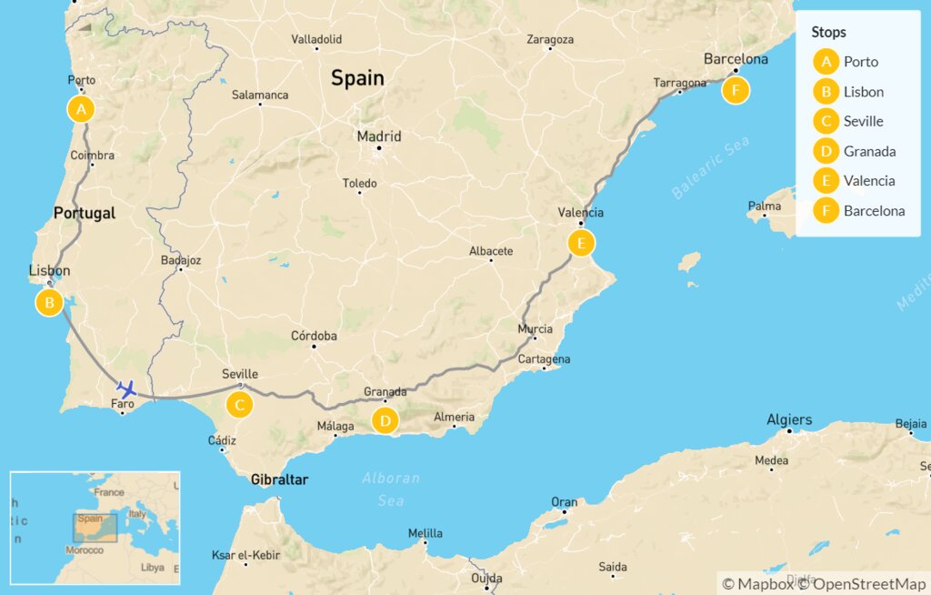 Map of Grand Tour of Portugal & Spain’s Iconic Cities – 16 Days