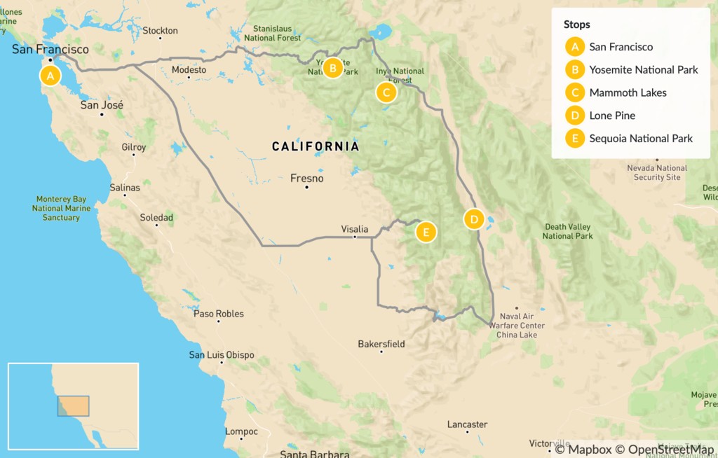 - Visit both the western and eastern sides of the Sierra Nevada ranges