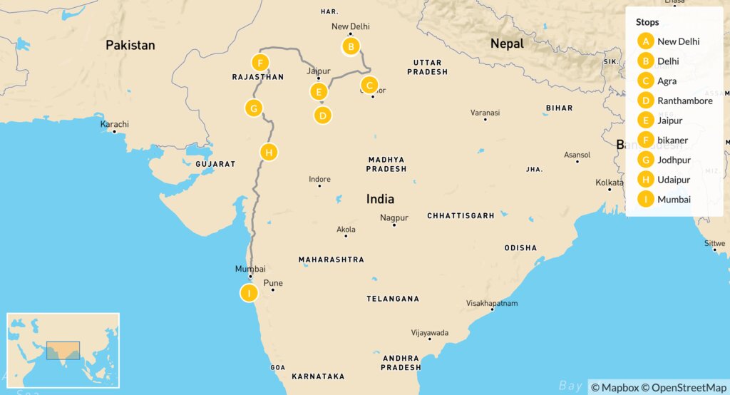 Map of Great Indian Train Journey on the Maharajas’ Express: Delhi to Mumbai – 11 Days