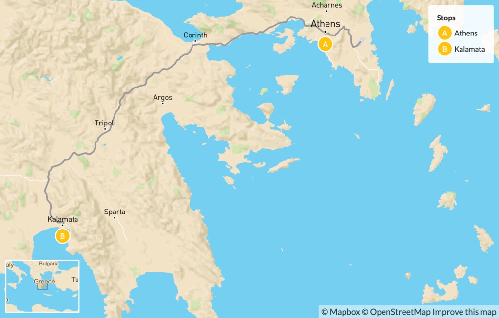Map of Greek Culture & Adventure for Families: Athens & the Peloponnese – 10 Days