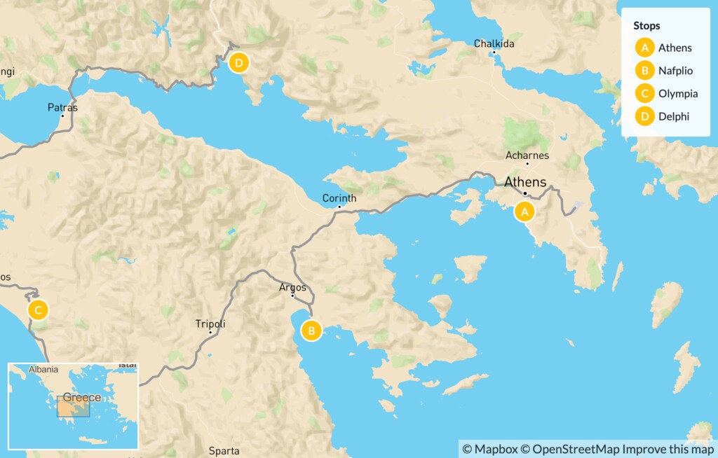 Map of Greek History, Nature, and Culture for Families: Athens & the Peloponnese – 10 Days