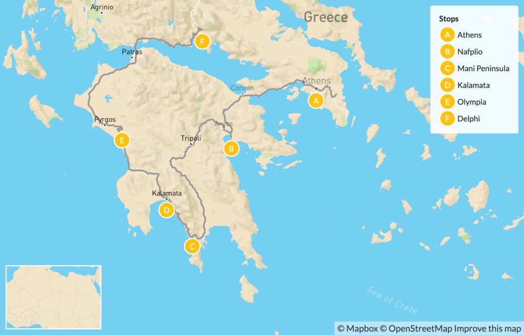 Map of Greek History, Nature, and Culture for Families: Athens & the Peloponnese – 14 Days