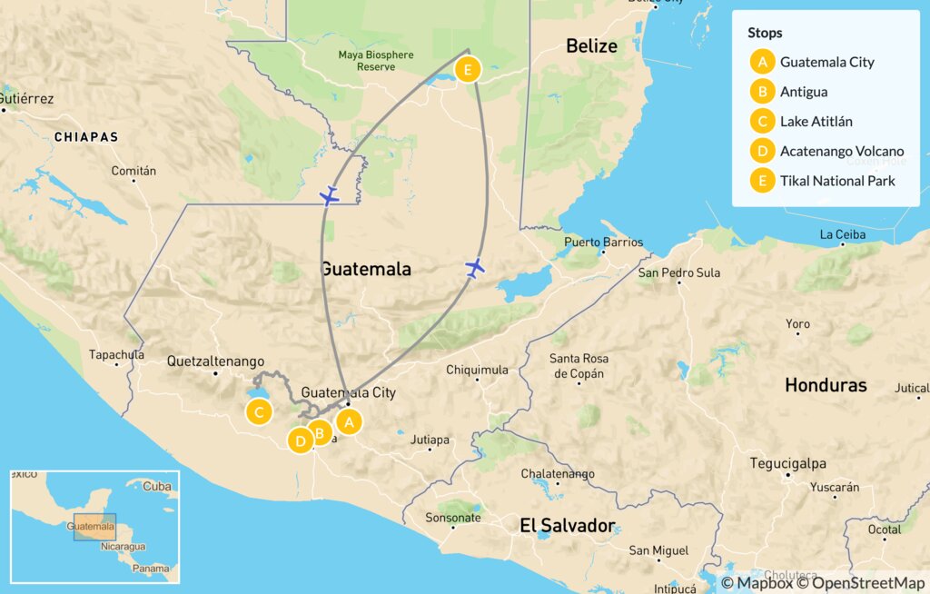 Map of Guatemala Adventure Highlights – 9 Days
