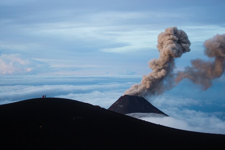 Depending on weather conditions, your group will rise early, enjoy the sunrise over volcano peaks, and embark on a 45-minute/1-hour trek up a gravel trail through a pine forest. This is the steepest trail yet, and it leads to the rocky, windy summit of Acatenango’s peak.