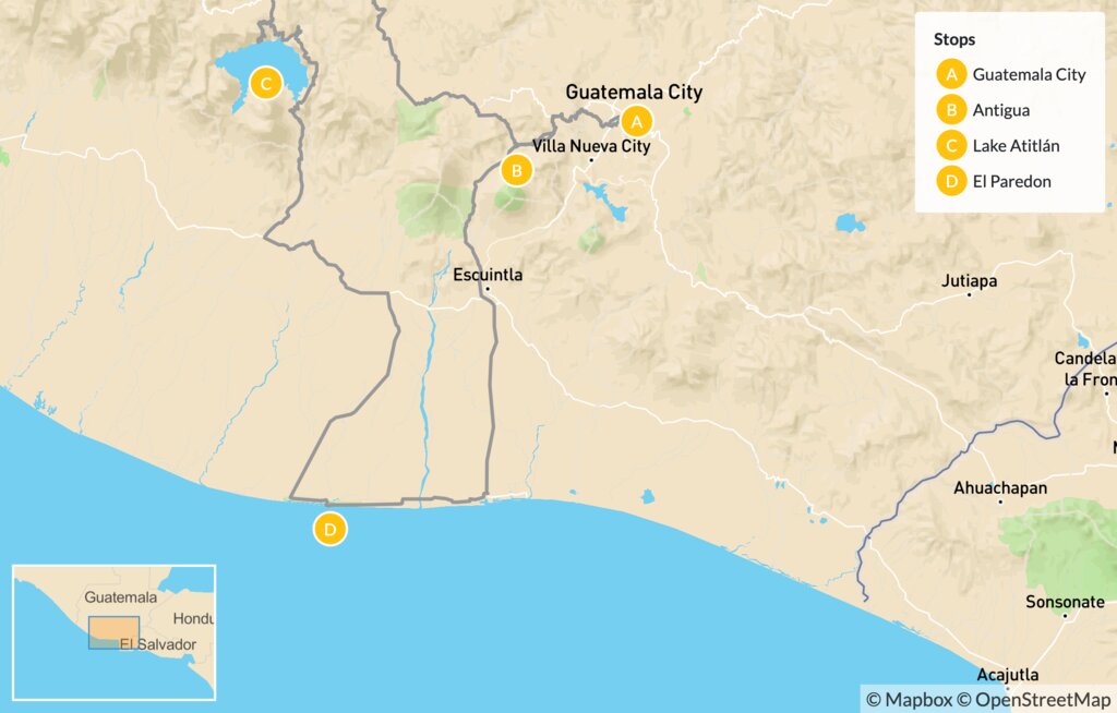 Map of Guatemala Cuisine, Culture & Coast for Families – 10 Days