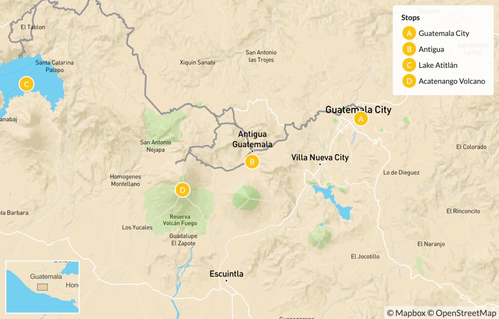 Map of Guatemala Culture & Active Adventure: From Antigua to Lake Atitlán – 10 Days