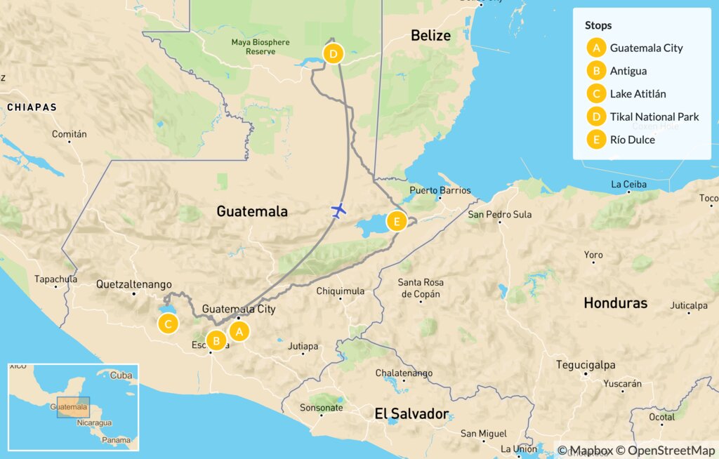 Map of Guatemala Culture & Cuisine Tour – 12 Days