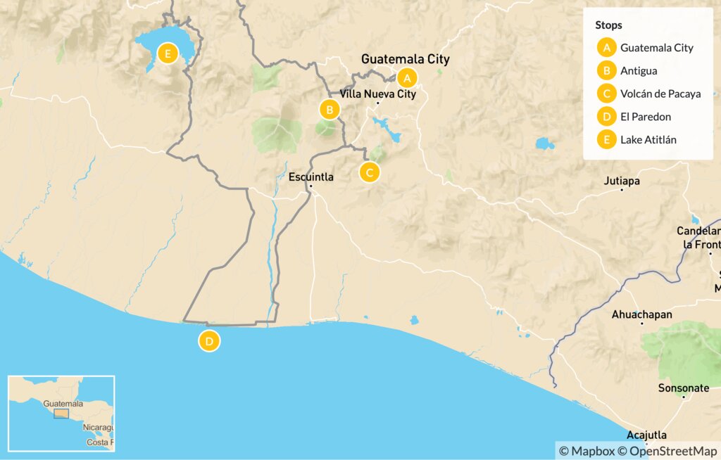 Explore Guatemala’s mystical, mountainous, and volcanic landscapes on this tour, including hiking, biking, and boating. Follow your guide through Antigua’s main square to learn about its colonial architecture and sleep under the shadow of Pacaya Volcano in its national park of the same name. Relax on the beach in El Paredon, cruise serene Lake Atitlán, and visit one of Central America’s largest markets in Chichicastenango.