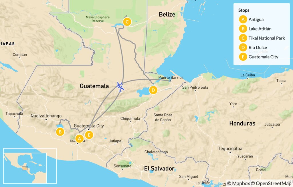 Map of Guatemala Honeymoon Adventure – 15 Days