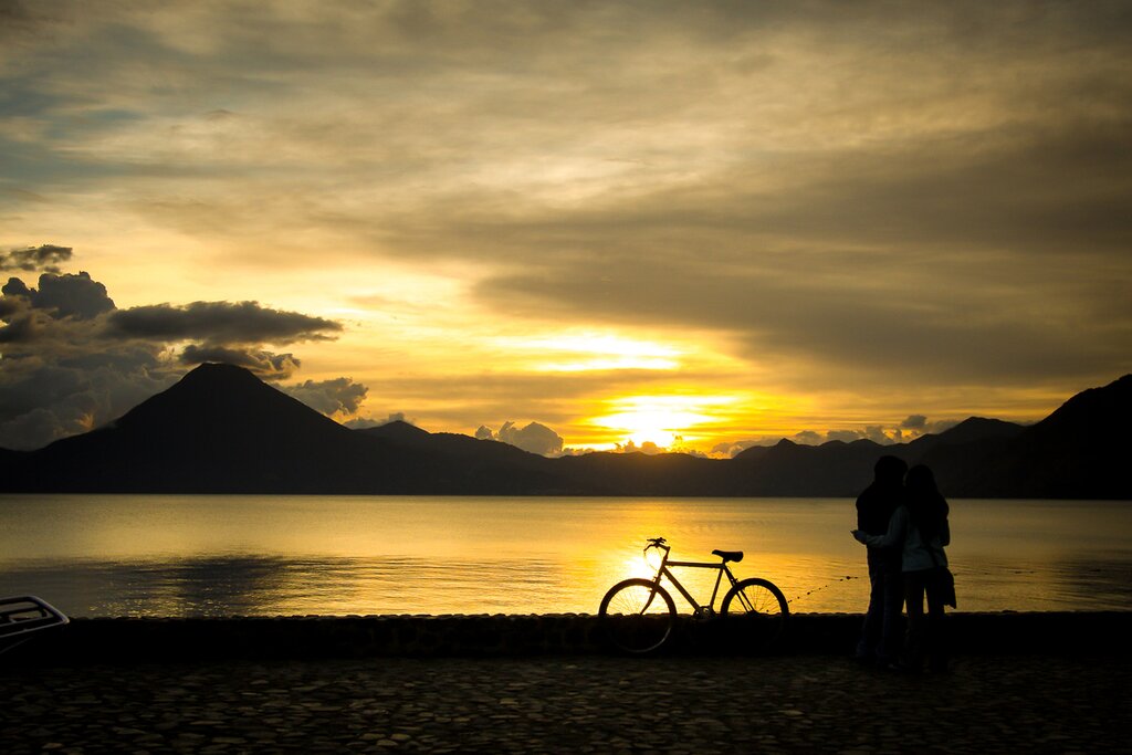 Today’s five-hour ride traverses the exodus route of the Indigenous Kaqchiquel people to Lake Atitlán after the Spanish conquest. You’ll start with an ascent of deep, switchbacking trails, a somewhat brutal 4-mile (7 km) climb that culminates with stunning views of Lake Atitlán—an enormous volcanic caldera surrounded by three volcanoes. Take a lunch break, then descend along the famous Santa Cat trail, known for its unique path through the town of Santa Catarina Palopó. Afterward, you’ll head over to Panajachel, where you’ll get settled at your accommodations and relax.