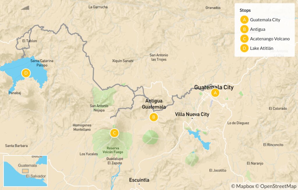 Map of Guatemala Volcano Camping & Photography Tour – 7 Days