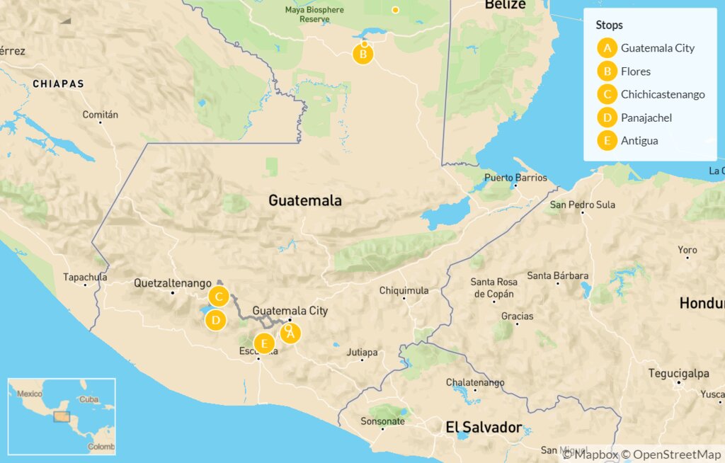 Map of Guatemala’s Natural Wonders & Local Culture – 9 Days