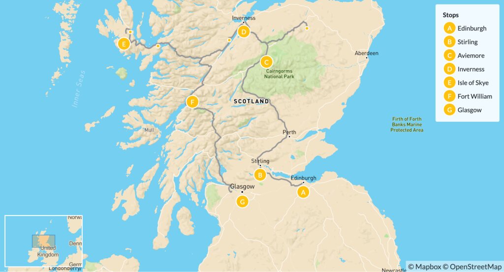 Map of Guided Grand Tour of Scotland – 11 Days