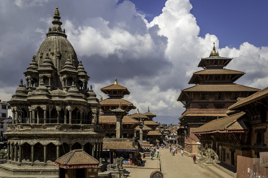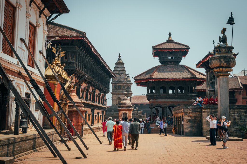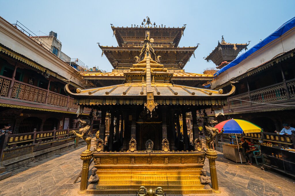 The square is surrounded by historic buildings, like the 14th-century Mahabouddha Temple and the 12th-century Hiranya Varna Mahavihar, also known as the Golden Temple. Admire the monastery’s golden facade adorned with intricate wood carvings before continuing to the Patan Museum, housed in a beautifully restored palace that once served as the royal residence. Peruse the impressive collection of traditional Nepalese art, including sculptures, wood carvings, metalwork, and religious artifacts dating back to the Lichhavi and Malla periods.