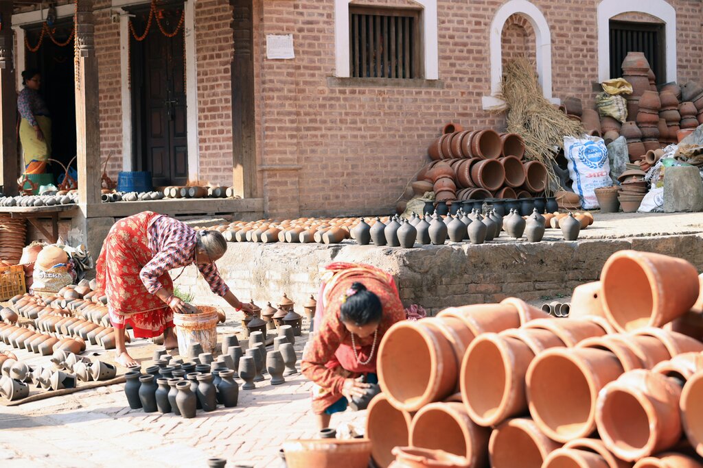 After two days of hiking, it’s time to return to city streets with a 30-minute transfer to Bhaktapur, known for its grand architecture, intricate wood carvings, and vibrant squares. Start at the UNESCO-listed Bhaktapur Durbar Square to admire the medieval Newar architecture and visit the Bhaktapur Museum. Peruse the impressive collection of artifacts highlighting the art, history, and daily life of the Newar people before continuing to Pottery Square. The square is aptly named as you’ll see plenty of potters shaping clay on their wheels, firing pieces in their kilns, and selling their finished pieces.