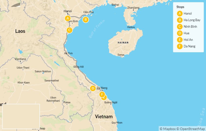 Map of Hidden Charms of Vietnam: Hanoi, Ha Long Bay, Hue & Hoi An – 11 Days
