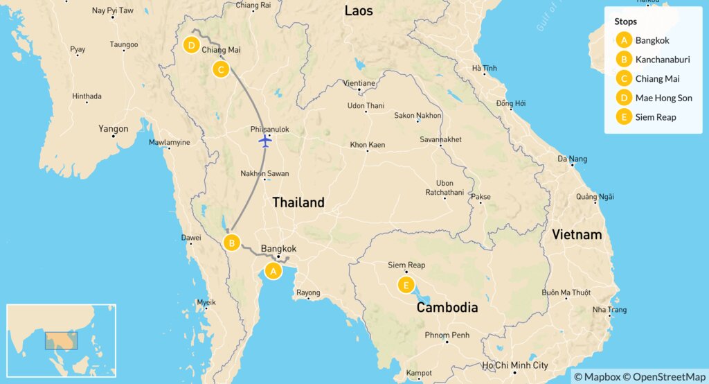 Map of Hidden Corners of Thailand & Cambodia – 10 Days