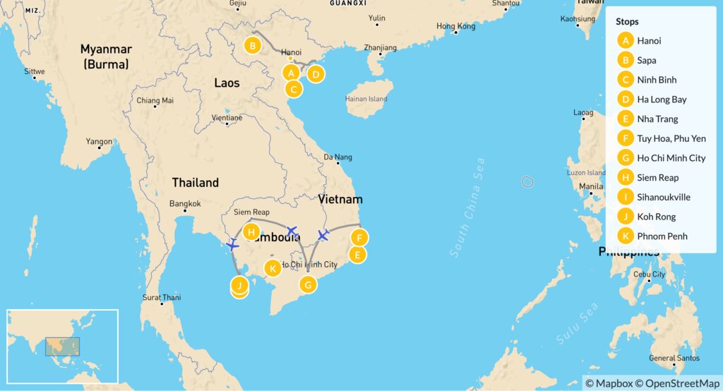 Map of Hidden Corners of Vietnam & Cambodia: Mountains, Cities & Beaches – 21 Days