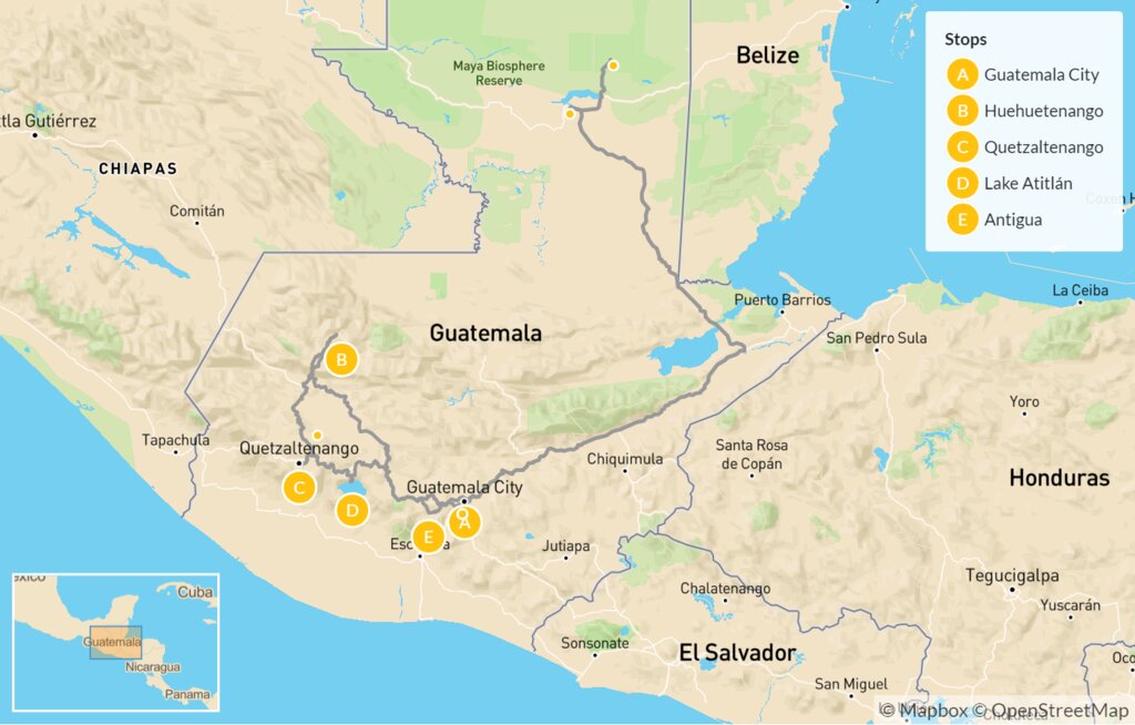 Map of Hidden Delights of Guatemala: Huehuetenango, Quetzaltenango & Lake Atitlán – 10 Days