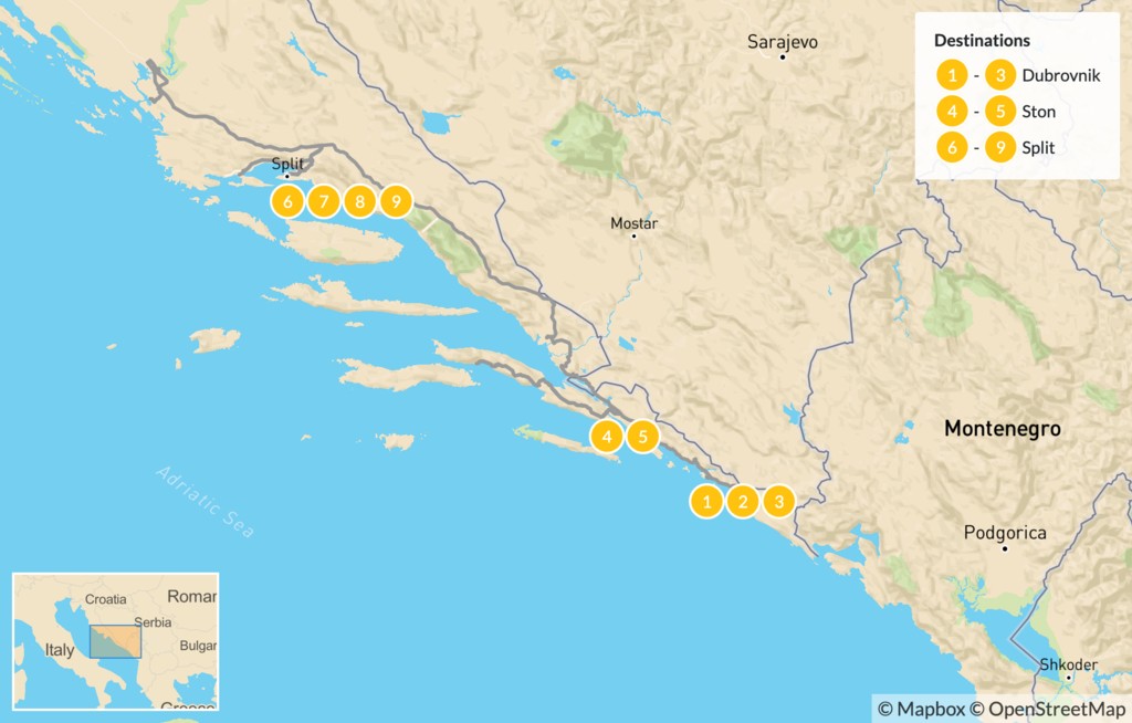 Discover the hidden gems of Croatia with this 10-day tour of the Dalmatian coast, featuring time spent in the popular and historic coastal cities of Dubrovnik and Split. You’ll explore the peaceful island hamlets and idyllic wooded setting of Koločep, the raw beauty of the Pelješac peninsula, and Mljet, the greenest Adriatic island. You’ll hike, bike, swim and sail quiet islands, ancient cities, and sparkling seas.