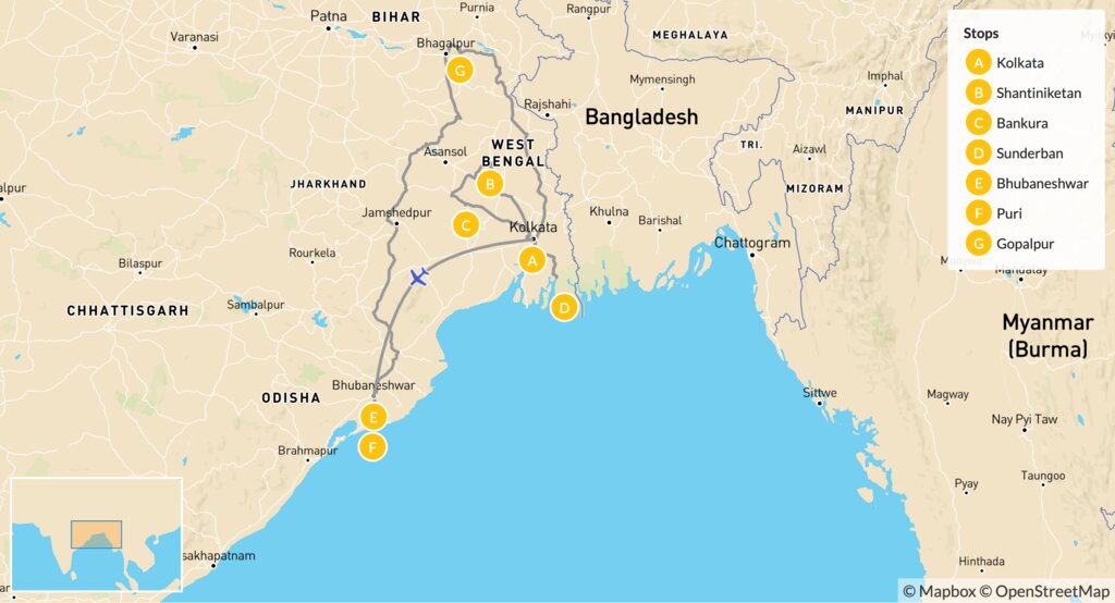 Map of Hidden Gems of Eastern India: From Kolkata to Gopalpur – 11 Days