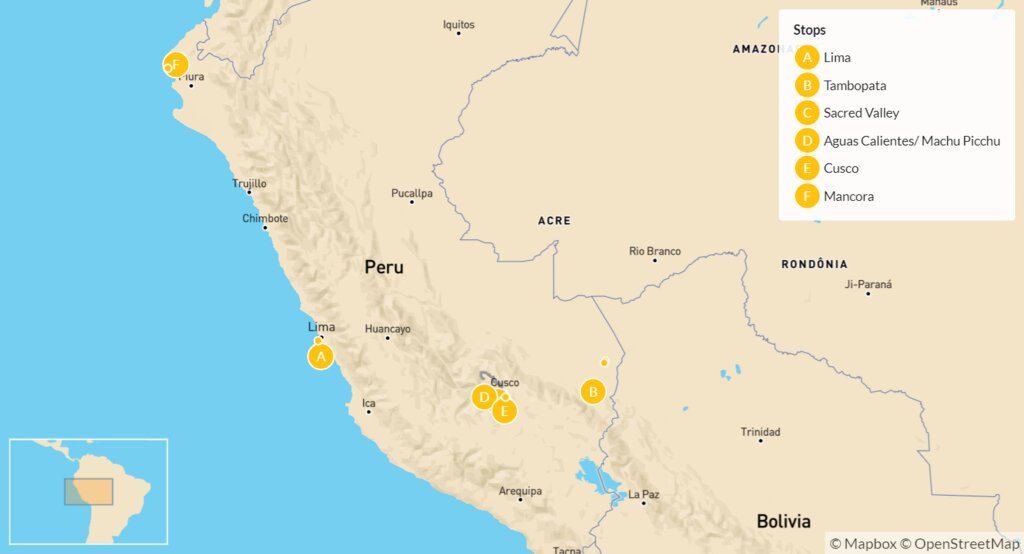 Map of Hidden Gems of Peru: Amazon, Andes, Beaches & More – 16 Days