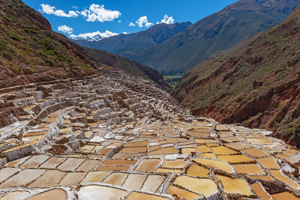 End the day with a trip to the Maras Salt Pans, a stunning patchwork of salt pans perched on a hillside. These salty pools are fed by natural springs at the top of the valley and have been used for salt production since Inca times.