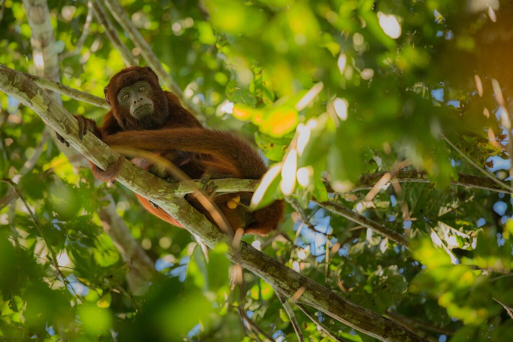 Today your Amazon adventure begins with a 90-minute flight east to Tambopata. This region is home to the Tambopata National Reserve, a protected 1,061 square mile (2,750 sq km) stretch of virgin Amazon rainforest bisected by the Tambopata River. The biodiverse reserve is home to an astounding array of plants and animals, including over 1,700 flora species, 600 types of birds, and animals ranging from black caiman to jaguars, sloths, and monkeys.