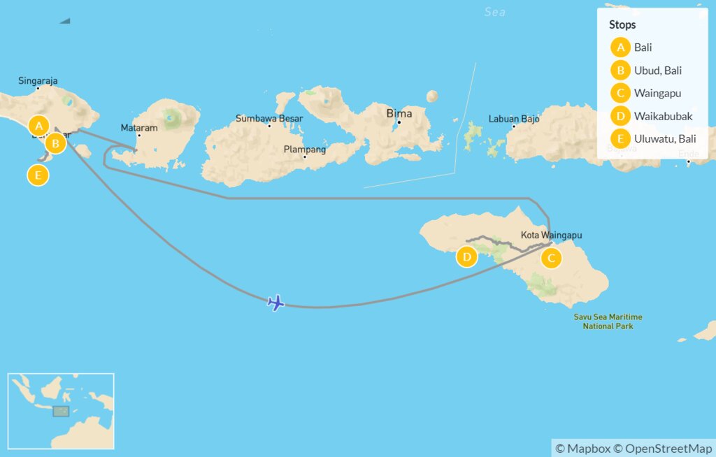Map of Hidden Gems on the Indonesian Islands of Bali & Sumba – 12 Days