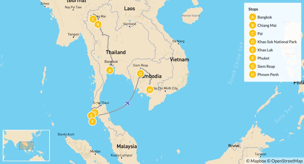 Map of Hidden Treasures of Thailand & Cambodia: Bangkok to Phnom Penh – 21 Days