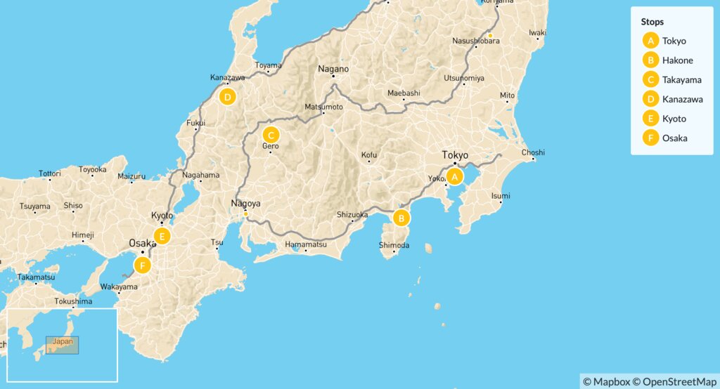 Map of Highlights & Hidden Corners of Japan – 9 Days