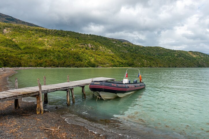 Today you’ll navigate the Strait of Magellan in a Zodiac boat! You’ll be picked up early for a one-hour ride to the launch point in the San Isidro area. Gear up in a semi-dry suit and board the boat on an exhilarating excursion in search of the beautiful Austral dolphin, a species known for its unusual black and gray coloring and native to the waters around southern Chile. It’s common to spot groups of up to 12 swimming along the side of the boat. Keep an eye out for sea lion colonies and a variety of sea birds, including albatrosses, petrels, and penguins.
