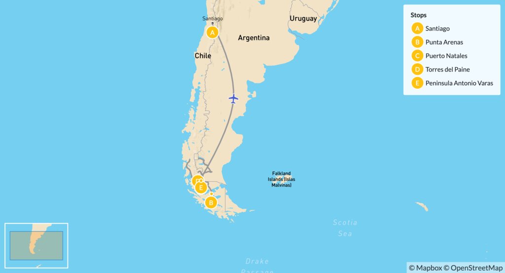 Map of Highlights & Hidden Gems of Chilean Patagonia – 11 Days