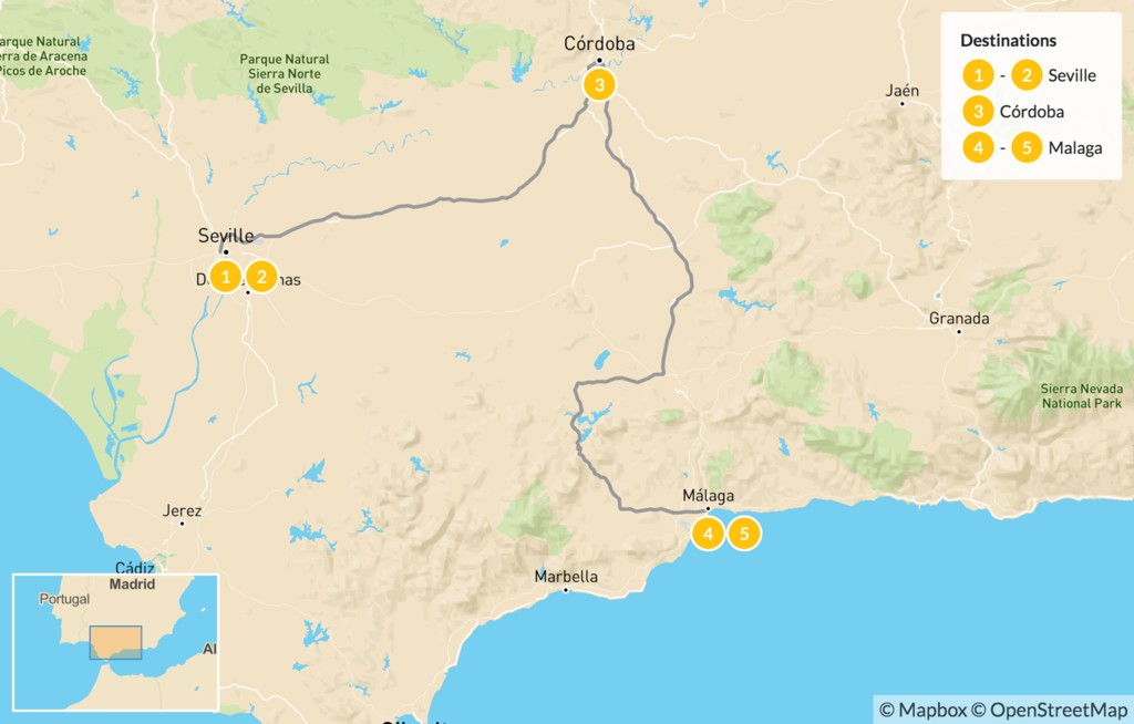 Map of Highlights of Andalusia: History, Gastronomy, and Culture – 6 Days