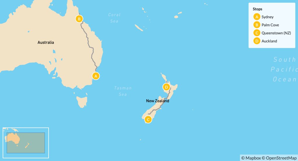 This 15-day itinerary perfectly blends beauty, culture, and thrilling adventures across Australia and New Zealand. Begin in Sydney, exploring its famous landmarks and the stunning Blue Mountains. Fly to Palm Cove, a tropical paradise home to the Great Barrier Reef and the ancient Daintree Rainforest. Cross over to New Zealand, landing in the adventure capital of Queenstown. Cruise the majestic Milford Sound / Piopiotahi, and finish in the vibrant city of Auckland.