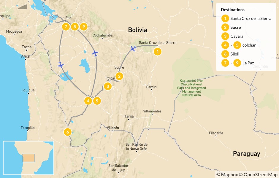 It’s time to say goodbye to Bolivia! You’ll be taken to the airport to catch your flight. Safe travels!