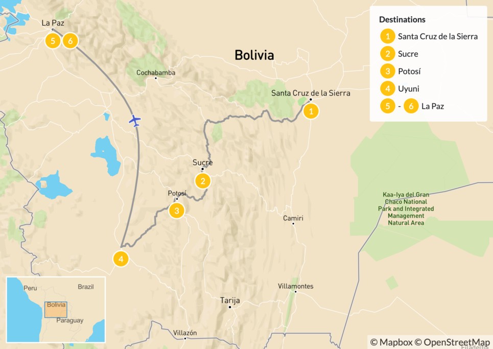 | Day 1 | Arrive in Santa Cruz de la Sierra | Santa Cruz de la Sierra |