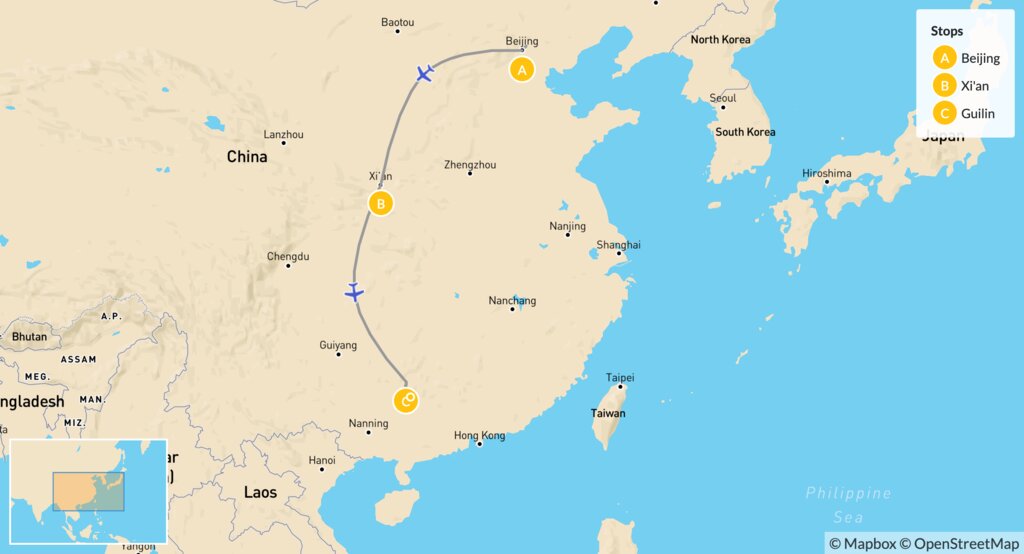 Map of Highlights of China: Beijing, Xi’an & Guilin – 8 Days