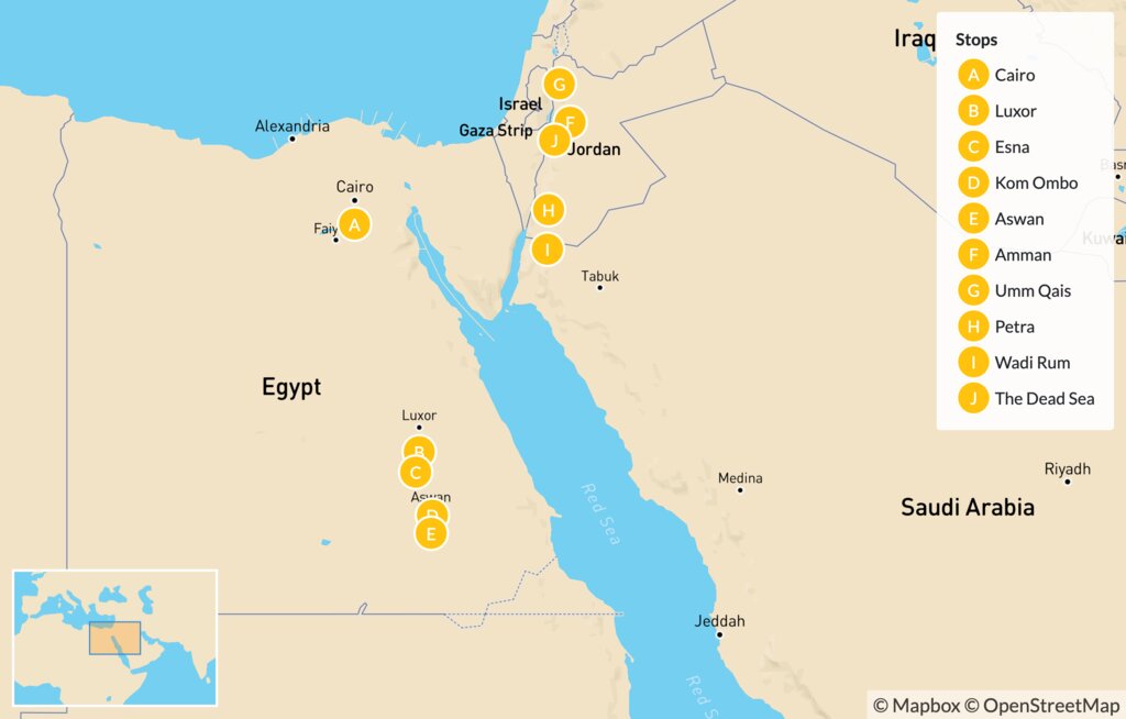 Map of Highlights of Egypt & Jordan: Cairo, Petra & More – 14 Days