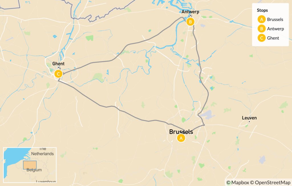 Map of Highlights of Flanders: Antwerp , Bruges & Ghent – 5 Days