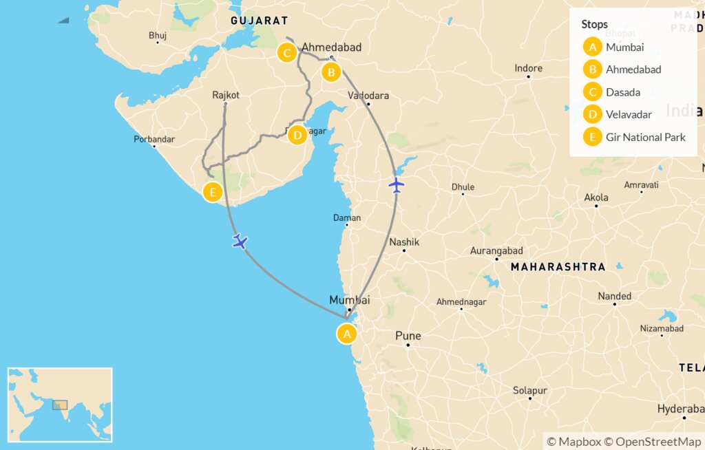 Map of Highlights of Gujarat: Culture & Wildlife – 9 Days