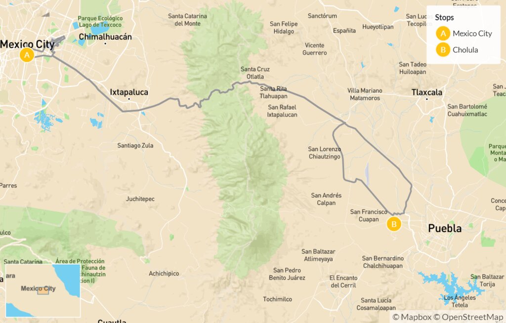 Map of Highlights of Mexico City & Cholula – 5 Days