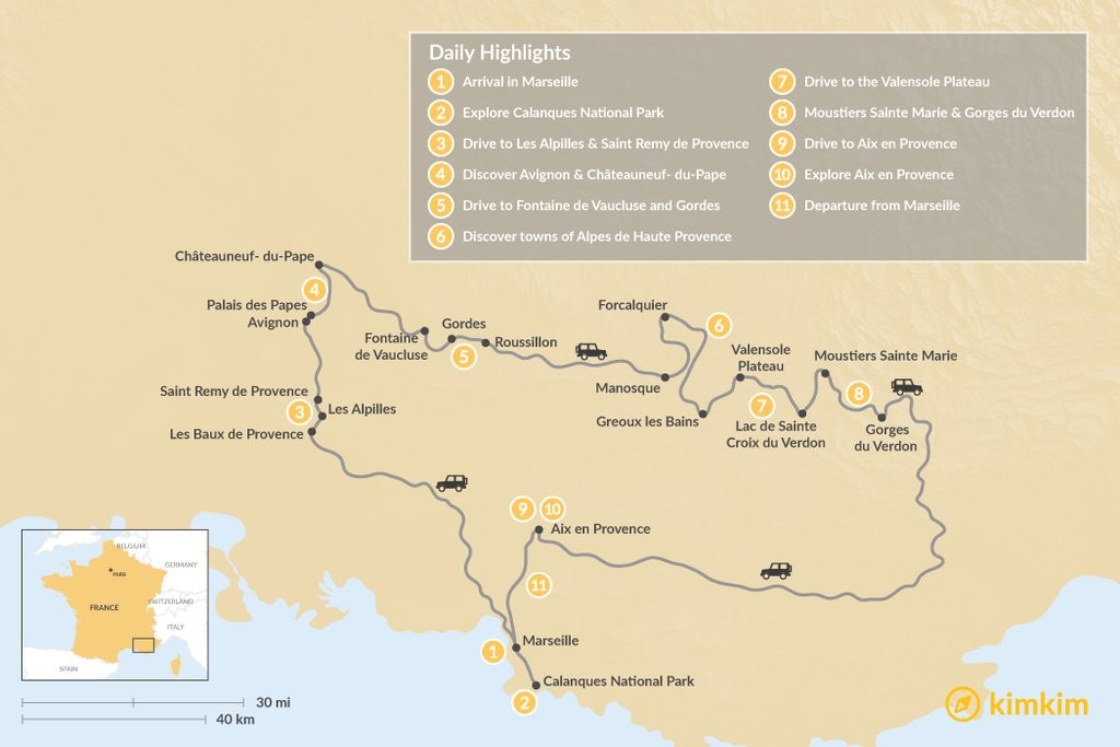 Map of Highlights of Provence – 11 Days