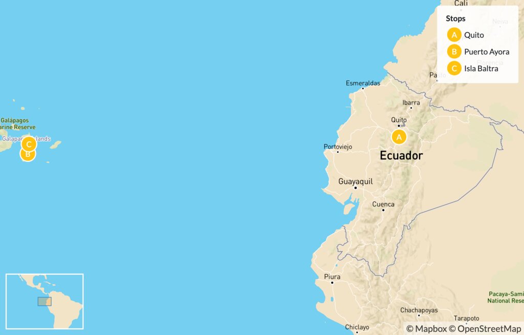Map of Highlights of Quito, the Andes & the Galápagos Islands – 8 Days