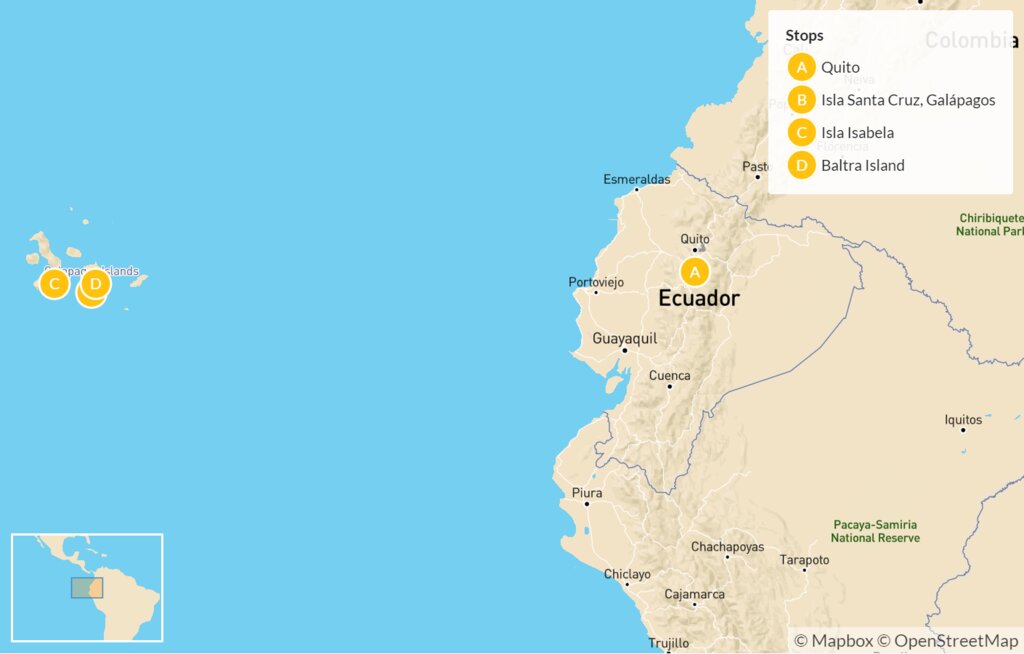 Map of Highlights of Quito & the Galápagos Islands – 9 Days