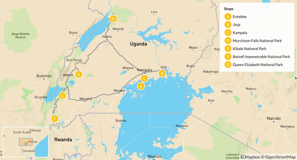 Map of Highlights of Uganda: Wildlife & Landscapes – 10 Days